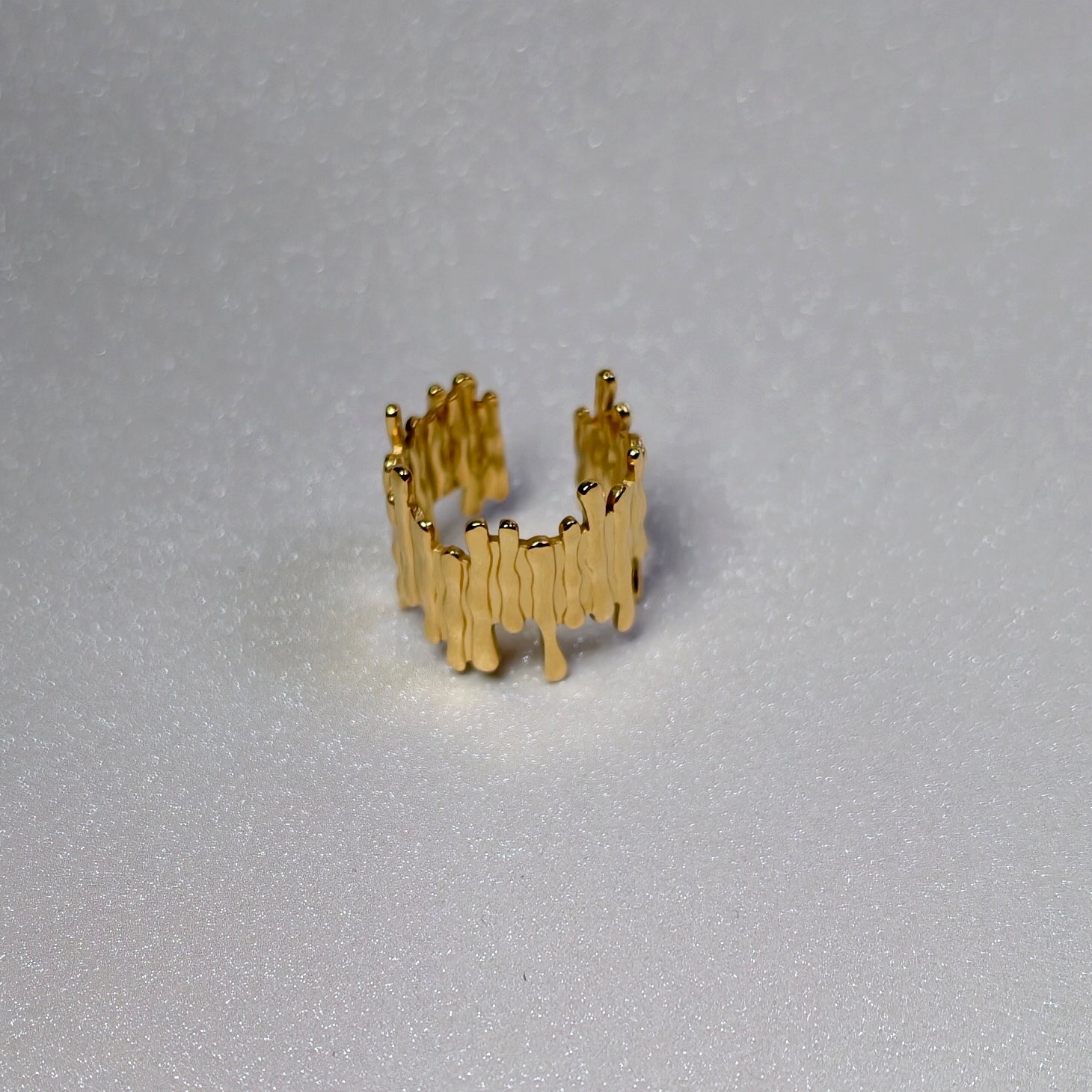 Bague réglable de la taille 52 à 58 en acier inoxydable de forme irrégulière .