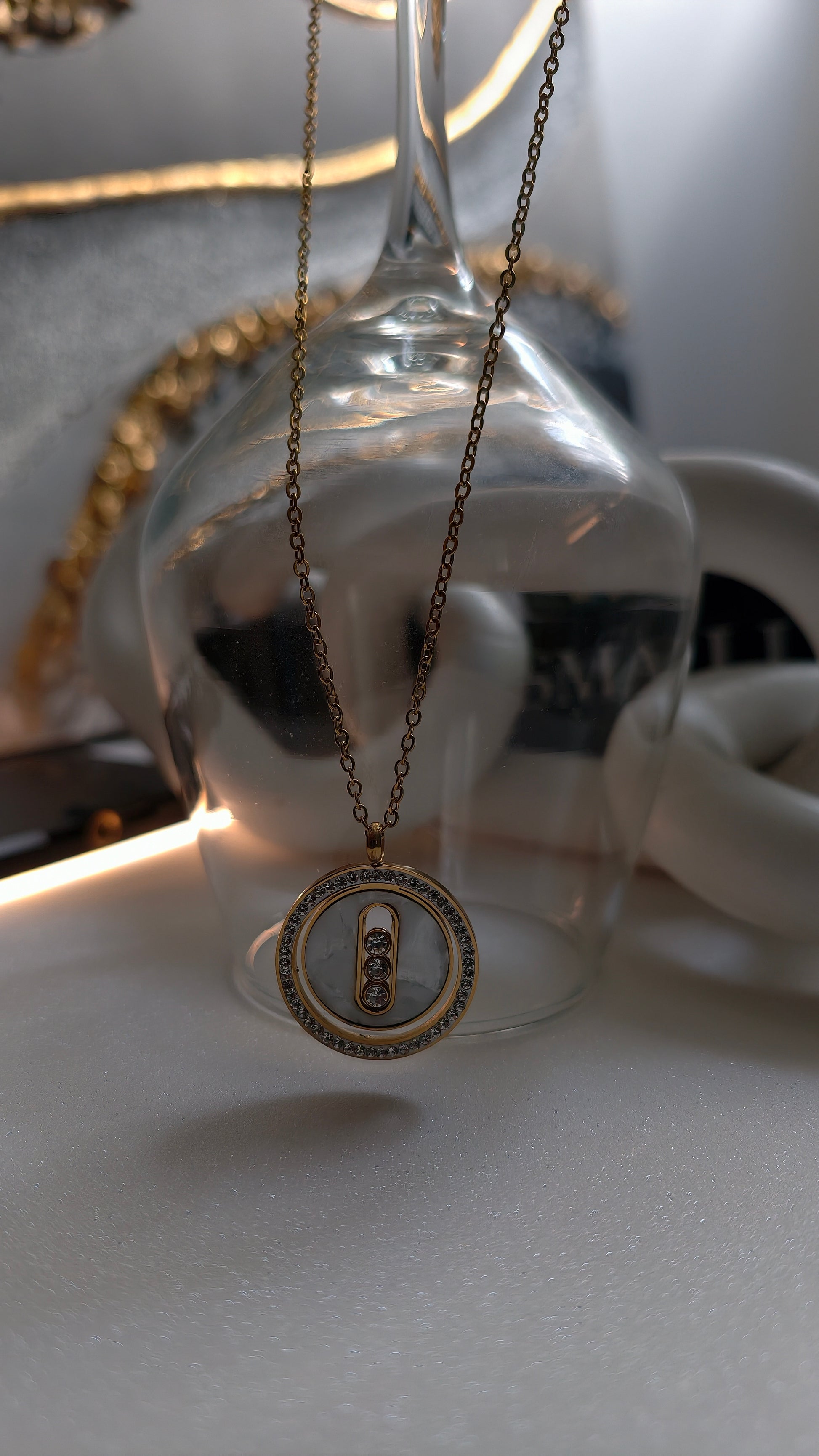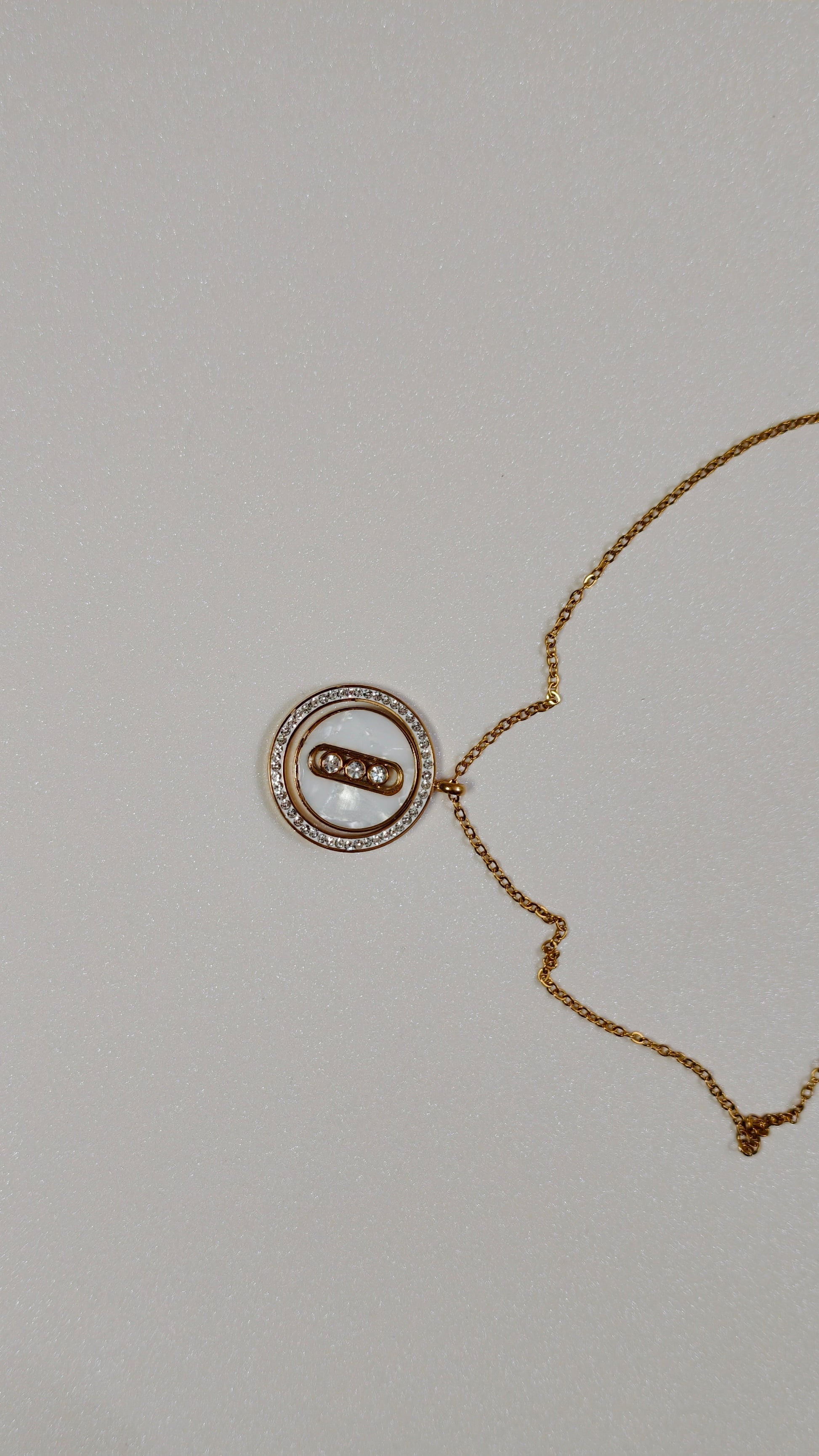 Collier avec pendentif rond avec strass certis de 25 cm environ +5 cm.